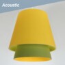 Take the double layer appeal of the L2 Collection and pair it with the functionality of colorful, acoustical material. The result? The L2 Acoustic. A perfect coexistence of the decorative and functional, illuminating beautifully and softening noise. The L2 Acoustic’s point of difference is its ability to bring sound absorbing feature to mainstream design. Luminaires that are complementary elements to the designer’s theme; not an imposition. Using a wide array of washable Lumenate® and matching this with colorful acoustical material, the resulting luminaire projects a multi-setting appeal.